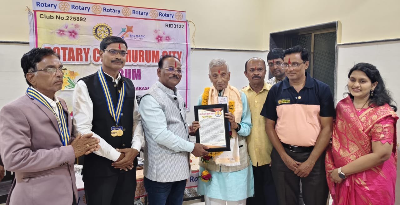 मुरूम : — समाजातील व्यक्तींच्या जीवनात डॉक्टरांचे महत्त्व कोरोना काळात आपल्या सर्वांना माहितच आहे. खऱ्या अर्थाने रुग्णांना जीवनदान देण्याचे काम, आरोग्य सेवा आणि समर्पण ही सामाजिक बांधिलकी त्यांनी जोपासली. त्यामुळेच आई-वडिलांनंतर सर्वात महत्त्वाचे स्थान हे समाजात डॉक्टरांचे असल्याचे प्रतिपादन धाराशिव येथील सहप्रांतपाल रोटे. प्रदिप मुंडे यांनी केले. डॉक्टर्स डे चे औचित्य साधून रोटरी क्लब मुरूम सिटी कडून आयोजित मुरूम येथील जिरोळे हॉस्पिटलच्या सभागृहात कृतज्ञता सोहळा मंगळवारी (ता. १) रोजी प्रमुख अतिथी म्हणून ते बोलत होते. या कार्यक्रमाच्या अध्यक्षस्थानी रोटरीचे नूतन अध्यक्ष प्रा. डॉ. आप्पासाहेब सूर्यवंशी होते. प्रमुख अतिथी धाराशिव येथील सहप्रांतपाल रोटे. प्रदिप मुंडे, नूतन सचिव कल्लापा पाटील, रोटरीचे माजी अध्यक्ष कमलाकर मोटे, सचिव सुनिल राठोड, विश्वस्त रोटरी सेवा ट्रस्टचे सनिल गर्जे, इंद्रजीत आखाडे आदींची प्रमुख उपस्थिती होती. प्रारंभी मान्यवरांच्या हस्ते धन्वंतरी व वसंतराव नाईक यांच्या प्रतिमेस पुष्प अर्पण करून अभिवादन करण्यात आले. यावेळी परिसरातील वैद्यकीय सेवेत उल्लेखनीय योगदान देणाऱ्या ज्येष्ठ डॉ. राधाकिशन डागा व डॉ. शिवप्रसाद काबरा यांचा मानपत्र, भेटवस्तू, शाल व पुष्पहार घालून सहाय्यक प्रांतपाल रोटे. प्रदिप मुंडे यांच्या हस्ते सत्कार करण्यात आला. डॉक्टरांच्या मानपत्राचे वाचन प्रा. डॉ. महेश मोटे, प्रा. राजकुमार वाकडे यांनी केले. यावेळी डॉ. दत्तात्रय जिरोळे, डॉ. विजयानंद बिराजदार, डॉ. नितीन डागा, डॉ. महेश स्वामी, डॉ. प्रशांत शिंदे, डॉ. महेश जिरोळे, डॉ. शिवराज हळळे, डॉ. गंगासागरे, डॉ. जयेश पल्लेवाड, डॉ. सागर काबरा, डॉ. राहुल चिलोबा, डॉ. प्रिती चिलोबा, डॉ. शिल्पा डागा, डॉ. वर्षा बिराजदार, डॉ. सुनिल टिकांबरे, डॉ. राजेंद्र पाटील, डॉ. गिरीश मिनीयार, डॉ. बळवंत चव्हाण, डॉ. शिल्पा जिरोळे आदींसह महात्मा बसवेश्वर पतसंस्थेचे नूतन संचालक शिवशरण वरनाळे व बाबासाहेब पाटील यांचाही भेटवस्तू, शाल व पुष्पहार घालून मान्यवरांच्या हस्ते सत्कार करण्यात आला. यावेळी राधाकिशन डागा, शिवप्रसाद काबरा, डॉ. नितीन डागा आदींनी मनोगत व्यक्त केले. अध्यक्षीय समारोपप्रसंगी डॉ. आप्पासाहेब सूर्यवंशी म्हणाले की, रोटरी ही केवळ संस्था नाही तर ही सामाजिक बांधिलकी जोपासणारी चळवळ असून रोटरीच्या कार्याची प्रशंसा केली. रोटरियन गोविंद पाटील, कलय्या स्वामी, मल्लिकार्जुन बदोले, भूषण पाताळे, पार्थ डागा आदींनी पुढाकार घेतला. कार्यक्रमाचे प्रास्ताविक सुनिल राठोड यांनी केले. सूत्रसंचालन संतोष कांबळे तर आभार कल्लापा पाटील यांनी मानले. या कार्यक्रमाला रोटरीचे सर्व सदस्य व नागरिक बहुसंख्येने उ