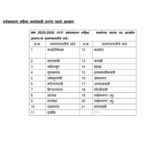 उमरगा:–  तालूक्यातील सरपंच पदाचे आरक्षण जाहीर करण्यासाठी अंतू-बळी पतंगे सभागृह उमरगा येथे  दि.10 जुलै रोजी आरक्षण सोडत सभा आयोजीत करण्यात आली होती. तालुक्यातील एकुण 80 ग्रामपंचायतीचे सन 2025 ते 2030 या कालावधी करीता सरपंच पदाचे आरक्षण सोडतीच्या अनुषंगाने  जिल्हाधिकारी, धाराशिव यांची अधिसूचना क्र. 2025/सा.प्र/ग्रा.पं.नि./का-1/सि.आर-02 दिनांक 03 जूलै 2025 अन्वये आदेशीत केले आहे. सदर बैठकीसाठी  जिल्हाधिकारी यांचे आदेशानुसार उमरगा चे उपविभागीय अधिकारी  दत्तू शेवाळे यांच्या अध्यक्षतेखाली बैठक संपन्न झाली. बैठकीस उपस्थितीत विविध गावातून आलेल्या नागरिकांच्या स्वाक्ष-या घेण्यात आल्या.बैठकीस उपस्थितीत असलेल्या सर्व मान्यवरासमोर  जिल्हाधिकारी धाराशिव यांची अधिसूचना 2025/सा.प्र/ग्रा.पं.नि./का-1/सि.आर-02 दिनांक 03 जूलै 2025 अन्वये सरपंच, उपसरपंच निवडणूक नियम 1964 मधील नियम 3 (अ) (ब) प्रमाणे उमरगा तालुक्यातील एकूण 80 ग्राम पंचायतीच्या सरपंच पदाचे आरक्षण निश्चीती करण्यात आले. प्रथम अनुसूचित जाती, अनुसूचित जमाती, नागरीकांचा मागास प्रवर्ग, सर्वसाधारण व प्रवर्ग निहाय स्त्रियांचे आरक्षण खालील प्रमाणे काढण्यात आले