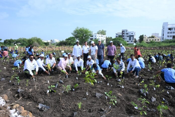 उमरगा :– महाराष्ट्र  शासन व जिल्हा प्रशासन यांच्या यांच्या संयुक्त विद्यमाने राबविण्यात येणाऱ्या “हरित धाराशिव अभियान” अंतर्गत एका दिवसात १५ लक्ष वृक्षारोपणाचा संकल्प करण्यात आला आहे. या मोहिमेच्या अनुषंगाने कीर्ती किरण पुजार, जिल्हाधिकारी धाराशिव यांच्या मार्गदर्शनाखाली उमरगा नगरपरिषद हद्दीतील बीज गुणांक केंद्र, उमरगा येथे 60 गुंठे क्षेत्रामध्ये 18 हजार झाडे लावण्याचा संकल्प केला होता.  दि.१९. जुलै रोजी सकाळी ७.०० वाजता शहरातील शिवपुरी रोडवरील बीज गुणांक केंद्र परिसरात घन वन पद्धतीने 22 प्रजातीच्या 18125  वृक्षाच्या रोपाची लागवड करण्यात आली.