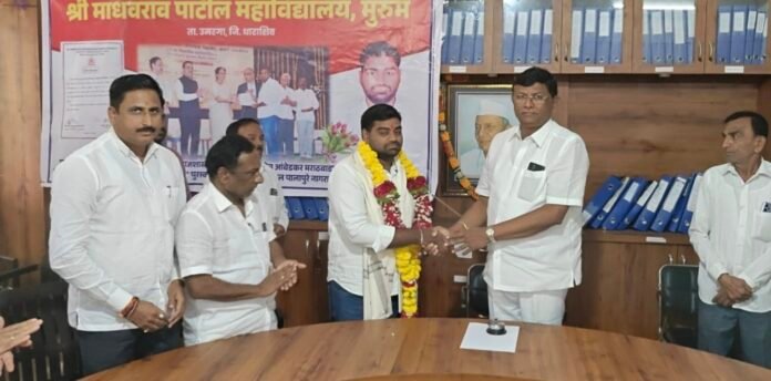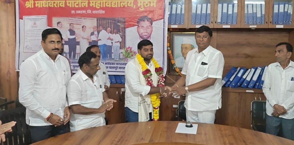 मुरूम  : येथील श्री माधवराव पाटील महाविद्यालयातील समाजशास्त्र पदव्युत्तर विषयात मार्च-एप्रिल २०२५ मध्ये झालेल्या परीक्षेत गुणाानुक्रमे डॉ. बाबासाहेब आंबेडकर मराठवाडा विद्यापीठातून प्रथम क्रमांक मिळविल्याबद्दल नगर शिक्षण विकास मंडळाच्या वतीने जिल्हा बँकेचे अध्यक्ष बापूराव पाटील यांच्या हस्ते नागराज पालापूरे यांचा मंगळवार (ता. २६) रोजी सांस्कृतिक सभागृहात सत्कार करण्यात आला. या महाविद्यालयाने गुणवत्तेची परंपरा गेल्या अनेक वर्षापासून जोपासलेली असून पुढेही ही गुणवत्ता कायम राखण्याचा मनोधर्य यावेळी बापूराव पाटील यांनी व्यक्त केला. यावेळी माजी नगराध्यक्ष धनराज मंगरुळे, संस्थेचे संचालक राजेंद्र भोसगे, डॉ. सतिश शेळके, सुजित शेळके, चंद्रकांत बालकुंदे, गणेश अंबर, प्राचार्य डॉ. अशोक सपाटे, बेळंंब चे सरपंच महालिंगप्पा बाबशेट्टी, पालक सुभाष पालापूरे, रोहित पालापूरे आदींची प्रमुख उपस्थिती होती. यावेळी सतिश शेळके यांनी मनोगत व्यक्त केले. या कार्यक्रमाचे प्रास्ताविक प्राचार्य अशोक सपाटे यांनी केले. सूत्रसंचालन प्रा. डॉ. सुभाष हुलपल्ले तर आभार प्रा. डॉ. महेश मोटे यांनी मानले. यावेळी विविध शाखेचे विद्यार्थी-विद्यार्थिनी, प्राध्यापक-प्राध्यापिका व शिक्षकेत्तर कर्मचारी बहुसंख्येने उपस्थित होते.