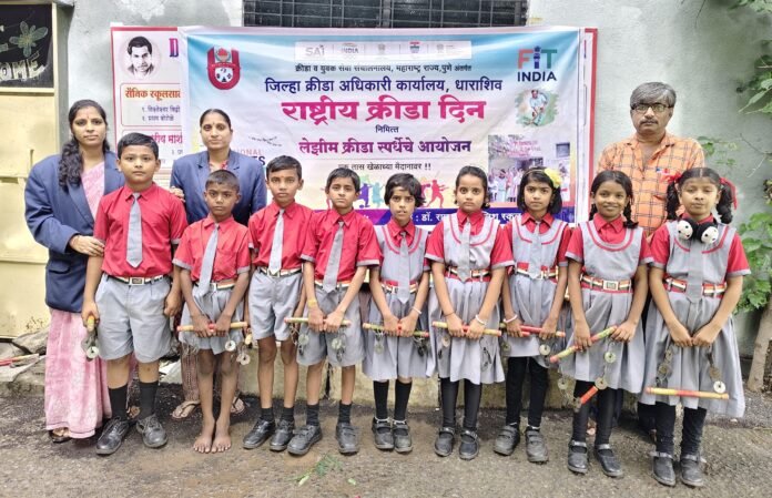 उमरगा : शहरातील डॉ.रामानुजन इंग्लिश स्कूल, उमरगा तथा जिल्हा क्रीडा अधिकारी कार्यालय धाराशिव यांच्या संयुक्त विद्यमानाने फिट इंडिया मोहिमेअंतर्गत हॉकीचे जादूगार मेजर ध्यानचंद यांच्या जन्मदिनी दि.29 ऑगस्ट रोजी राष्ट्रीय क्रीडा दिन साजरा करण्यात आला. यावेळी लेझीम क्रीडा स्पर्धेचे आयोजन करण्यात आले. राष्ट्रीय क्रीडा दिना निमित्त डॉ. रामानुजन इंग्लिश मीडियम स्कूल येथे विविध खेळाचे आयोजन करण्यात आले होते. यावेळी यशस्वी खेळाडूंचा सत्कार करण्यात आला.भारतीय पारंपरिक खेळ लेझीम, लाठी – काठी, कराटे असे विविध खेळ घेण्यात आले. शाळेतील सर्व विद्यार्थ्यांनी उस्फूर्त असा प्रतिसाद नोंदवला. खेळ हे जीवनासाठी किती आवश्यक आहे व त्याचे फायदे काय आहेत. याबद्दल सविस्तर माहिती महेश अंबर यांनी दिली. खेळ हा आपल्या जीवनाचा अविभाज्य अंग असून, मन हे प्रफुल्लित राहण्यासाठी कोणता तरी एक खेळ खेळलाच पाहिजे असे विचार क्रीडा शिक्षक महमदरफी शेख यांनी मांडले. कार्यक्रम यशस्वी होण्यासाठी शाळेतील सर्व शिक्षक वृंद दुर्गारांनी बिद्री, श्रीनिधी घोडके, अंकिता पुजारी, संध्या मंमाळे, कांचन आलमाले, निशा कोकणे, शीतल बनसोडे, सचिन पाटील, संजना कोकुळवार, धुमाळ उज्वला, विवेक कांबळे, अनिता गडदे यांनी परिश्रम घेतले.कार्यक्रमाला विद्यार्थी तसेच पालक व माजी विद्यार्थी मोठ्या संख्येने उपस्थित होते.