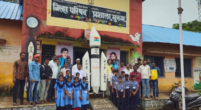 मुरूमच्या किसान गणेश मंडळाकडून प्रशालेला शैक्षणिक उपक्रम इस्रो चांद्रयानाची प्रतिकृतीची भेट