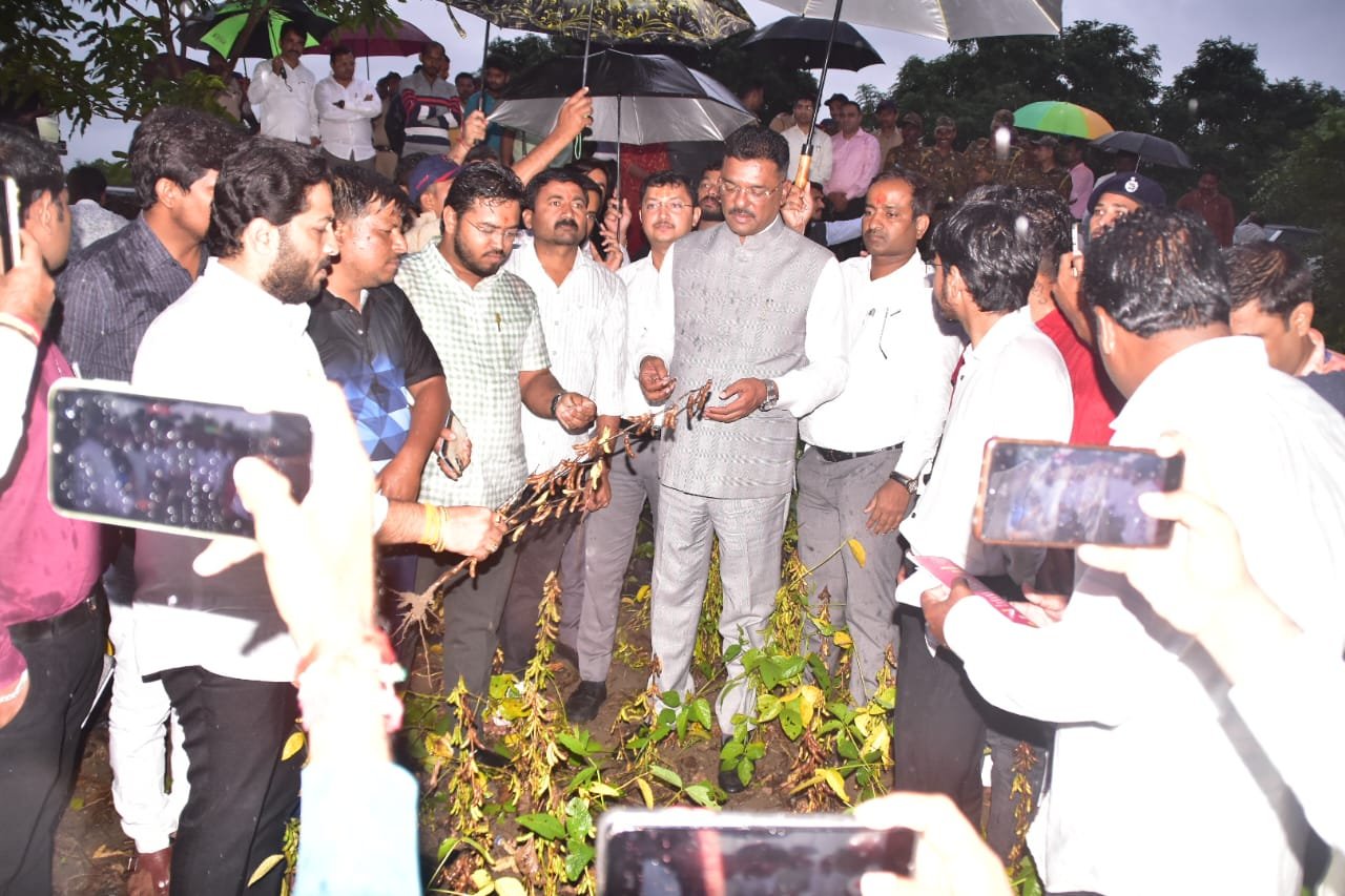 धाराशिव : अतिवृष्टीने जिल्ह्यात शेतकरी, पशुपालक यांचे मोठ्या प्रमाणात नुकसान झाले आहे.या नुकसानीचे पंचनामे तातडीने करण्यासाठी जिल्हा प्रशासनाला सूचना केलेल्या आहेत.त्याप्रमाणे कार्यवाही सुरूच आहे. या अतिवृष्टीने नुकसान झालेल्या प्रत्येक शेतकऱ्यांना, पशुपालकांना शासन मदत मिळेल. एकही नुकसानग्रस्त मदतीपासून वंचित राहणार नाही, अशी ग्वाही परिवहन मंत्री तथा जिल्ह्याचे पालकमंत्री प्रताप सरनाईक यांनी शेतकऱ्यांना दिली. धाराशिव तालुक्यातील वडगाव (सिद्धेश्वर) येथे नुकसानग्रस्त शेत पिकांची पाहणी भर पावसात पालकमंत्री सरनाईक यांनी आज केली. यावेळी ते बोलत होते. वडगाव (सि.) येथील शेतकरी भुजंग जानराव यांनी लावलेल्या दोन एकर सोयाबीन पिकांची पाहणी पालकमंत्री सरनाईक यांनी केली व जानराव यांची व्यथा त्यांच्या बांधावर जात जाणून घेतली. यावेळी गजेंद्र जाधव यांनीही परिसरातील पिकांच्या नुकसानीची माहिती पालकमंत्री सरनाईक यांना दिली. पाहणी प्रसंगी जिल्हाधिकारी किर्ती कुमार पुजार, उपविभागीय अधिकारी ओंकार देशमुख, जिल्हा कृषी अधीक्षक अधिकारी महादेव आसलकर, तलाठी माधव कदम, कृषी व महसूल विभागाचे अधिकारी उपस्थित होते. जिल्हा प्रशासनाने ऑगस्टपर्यंत झालेल्या नुकसानीचे पंचनामे पूर्ण केले आहेत. त्यासंबंधी नुकसान भरपाई मिळण्याबाबतचा प्रस्ताव देखील शासनास सादर केला आहे. परंतु त्यानंतरही अतिवृष्टी, पावसाने शेतकरी, पशुपालक यांचे नुकसान झालेले आहे, त्याबाबतचे पंचनामे करण्याची कार्यवाही सुरूच आहे. ही कार्यवाही पूर्ण होताच शासनास प्रस्ताव सादर करण्यात येईल. प्रत्येक नुकसानग्रस्त शेतकऱ्यांना शासन मदत मिळेल, असे पालकमंत्री सरनाईक यांनी यावेळी शेतकऱ्यांना सांगितले.