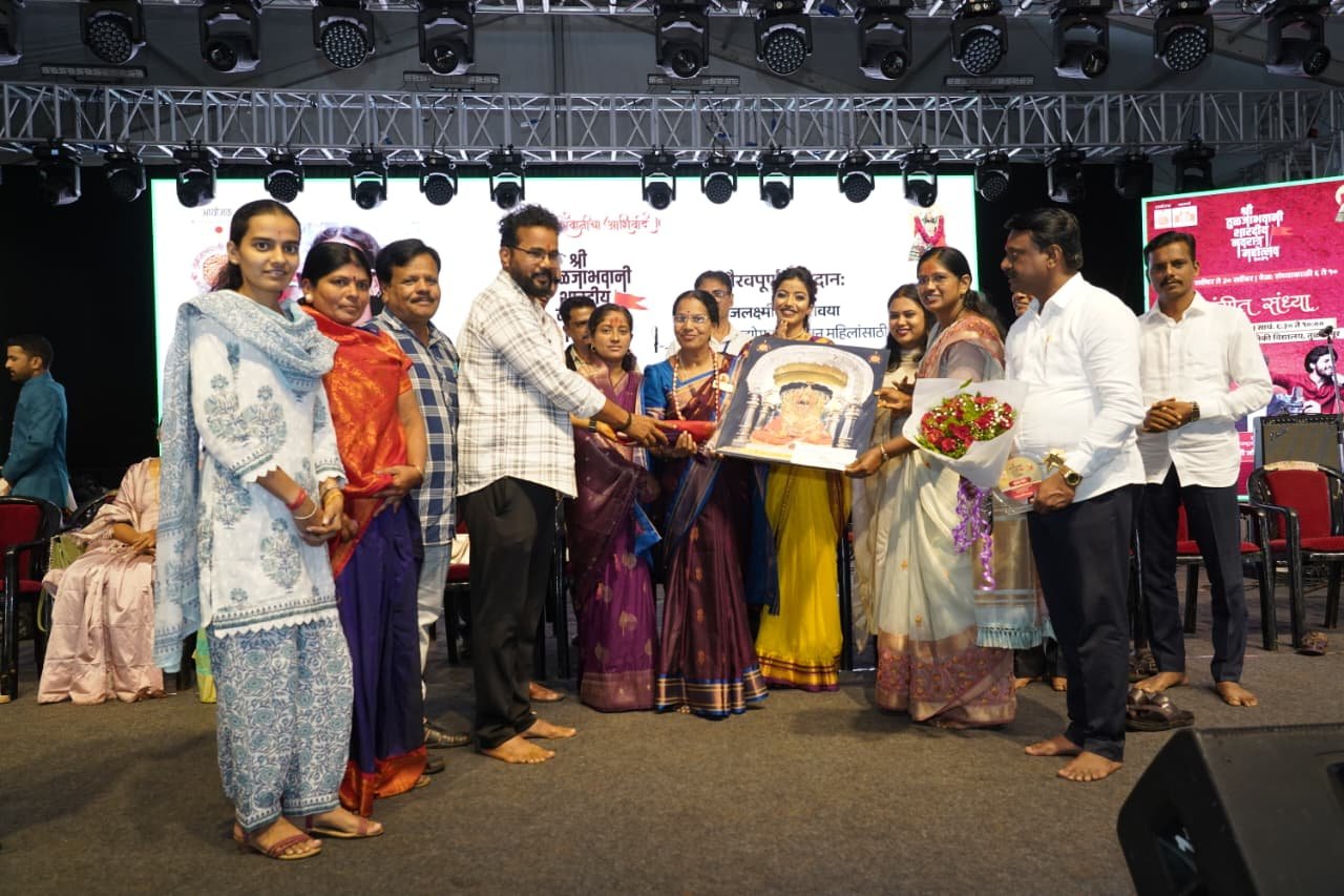 तुळजापूर:– श्री तुळजाभवानी मंदिर संस्थानतर्फे आयोजित शारदीय नवरात्र सांस्कृतिक महोत्सव २०२५ चा शुभारंभ सोमवारी २२ सप्टेंबर रोजी सायंकाळी सैनिकी विद्यालयाच्या प्रांगणात झाला. पावसाळी वातावरण असूनही प्रेक्षकांनी उत्साहाने सहभाग नोंदवला.प्रेक्षकांच्या सोयीसाठी भव्य वॉटरप्रूफ मंडप उभारण्यात आला आहे. महोत्सवाच्या पहिल्या दिवशी गायक रोहित राऊत,जुईली जोगळेकर आणि पद्मनाभ गायकवाड यांच्या सुरेल गाण्यांनी ‘संगीत संध्या’ रंगली.महोत्सवाचे उद्घाटन सौ.सौमय्याश्री पुजार,आमदार प्रवीण स्वामी व तहसीलदार तथा मंदिर संस्थान व्यवस्थापक माया माने यांच्या हस्ते झाले.यावेळी जिल्हाधिकारी किर्ती किरण पुजार,निवासी उपजिल्हाधिकारी शोभा जाधव, लेखाधिकारी संतोष भेंकी,पाळीकर पुजारी मंडळाचे अध्यक्ष विपिन शिंदे आदी मान्यवर उपस्थित होते.कार्यक्रमाच्या प्रारंभी बचतगटाच्या माध्यमातून उत्कृष्ट काम करणाऱ्या अस्मिता अविनाश सूर्यवंशी यांचा विशेष सत्कार करण्यात आला. महिलांच्या सक्षमीकरणासाठी कार्यरत असलेल्या श्रीमती सूर्यवंशी यांना देवीची प्रतिमा,कवड्याची माळ, महावस्त्र व ११ हजार रुपयांचा धनादेश देऊन गौरविण्यात आले. तसेच गायक कलावंतांचाही यथोचित सन्मान करण्यात आला.पहिल्याच दिवशीच्या रंगतदार कार्यक्रमामुळे महोत्सवात उत्साहाचे वातावरण निर्माण झाले असून पुढील नऊ दिवस भक्ती व संस्कृतीचा संगम प्रेक्षकांना अनुभवता येणार आहे.