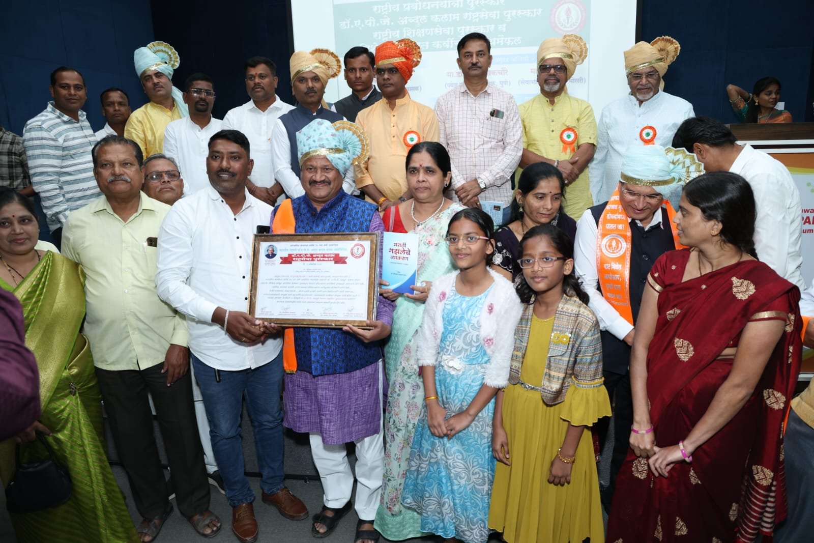 पूणे :– येथील काव्यमित्र संस्थेच्या वतीने दिला जाणारा सामाजिक क्षेत्रातला सर्वोत्कृष्ट राष्ट्रीय पुरस्कार समाजसेवक,गीतकार,चित्रपट निर्माते,लेखक,दिग्दर्शक, साहित्यिक,एकपात्री नाटककार, शिवश्री भूमिपुत्र वाघ यांना दिनांक 5 रोजी तारांगण विज्ञान केंद्र पिंपरी चिंचवड(पुणे) या ठिकाणी डॉक्टर ज्येष्ठ कवी समीक्षक सुरेश वाघचौरे,नारायण काळबांडे,उद्योजक संतोष शहा, डॉक्टर डी बी इंगळे, डॉक्टर राजू चौधरी, संयोजक तथा काव्य मित्र संस्थेचे संस्थापक विश्वस्त राजेंद्र सगर या मान्यवरांच्या शुभ हस्ते मानपत्र देऊन सन्मानित करण्यात आले. यासोबत डॉक्टर डी बी इंगळे यांच्या मराठी गजलीचे व्याकरण हा शोधनिबंध या पुस्तकाचे प्रकाशन करण्यात आले.यावेळी समाज विकास संस्थेच्या संस्थापिका शिवमती विजया वाघ या उपस्थित होत्या.याच सोबत कला, साहित्य,संस्कृती,आरोग्य,आणि सामाजिक क्षेत्रामध्ये महाराष्ट्रातील विविध भागातून ज्यांनी स्वत:ला वाहून घेतलं, समर्पित केलं. अशा ज्येष्ठ कार्यकर्त्यांचा सन्मानही याप्रसंगी करण्यात आला. या कार्यक्रमाला महाराष्ट्रातील सामाजिक क्षेत्रातले विविध मान्यवर उपस्थित होते,यात उत्तरदायित्व NGO फाउंडेशनचे खजिनदार विलास कुलकर्णी, हरिचंद्र ढाकणे, नागेश गायकवाड,अरुण सूर्यवंशी, प्रकाश पाचपिंडे,माधवराव भोसले, नितीन वाघमारे, प्रतिभा वाघमारे, संजय घोडके,घोडके ताई,ज्योती पाचपिंडे आदी मान्यवरांच्या उपस्थितीमध्ये हा कार्यक्रम पार पडला. या कार्यक्रमाचे सूत्रसंचालन निवेदिका आरती मलकपूरे, साक्षी सगर यांनी केले.तर आभार राजेंद्र सगर यांनी मानले.