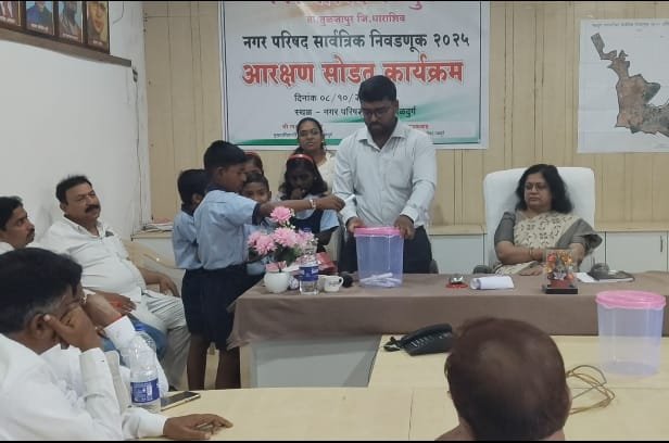 नळदुर्ग :– येथे होऊ घातलेल्या नगर परिषद सार्वत्रिक निवडणूक २०२५ साठी नगर परिषदेच्या सभागृहात आरक्षण सोडत जाहीर करण्यात आले यामध्ये प्रभाग निहाय सोडत जाहीर करण्यात आले तर महिलाना पन्नास टक्के आरक्षण देण्यात आले आसुन एकुण २० सदस्या पैकी १० सदस्या ह्या महिला राहाणार आहेत . दि. ८ रोजी नगर परिषद येथे पिठासन अधिकारी अरुणा गायकवाड नगर परिषदेचे मुख्याधिकारी लक्ष्मण कुंभार यांनी लहान मुलांना घेऊन चिठ्ठी काढून हे आरक्षण जाहीर करण्यात आले .