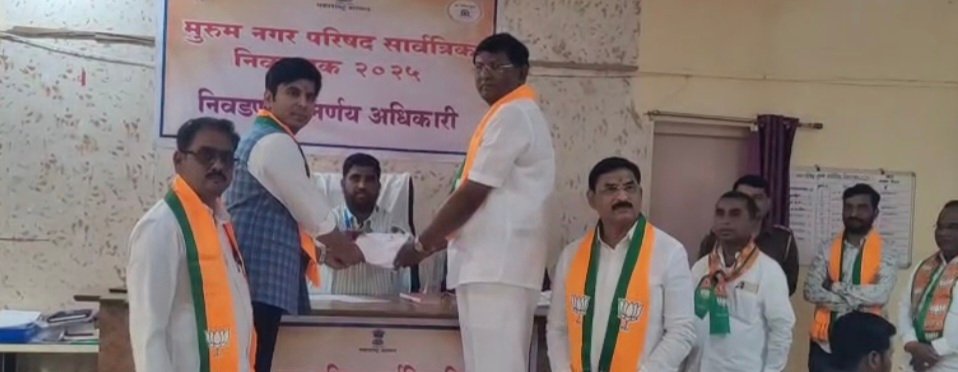 उमरगा :- तालुक्यातील मुरुम नगर परिषदेच्या नगराध्यक्ष पदाच्या निवडणूकीसाठी दि.14 रोजी जिल्हा मध्यवर्ती सहकारी बँकेचे अध्यक्ष तथा भाजपचे जेष्ठ नेते बापूराव पाटील यांनी भारतीय जनता पक्षाच्या वतीने नगराध्यक्ष पदासाठी निवडणूक निर्णय अधिकारी रणजितसिंह कोळेकर,सहाय्यक निवडणूक निर्णय अधिकारी मनिषा वडेपल्ली यांच्या कडे उमेदवारी अर्ज दाखल केला.यावेळी माजी जिल्हा परिषद सदस्य शरण पाटील,लातूर येथील शिरीष आप्पा उटगे,भाजपचे मुरूम मंडळ अध्यक्ष गणेश अंबर,माजी नगराध्यक्ष रशीद शेख,धनराज मंगरुळे,गोविंद पाटील,गौस शेख,सुजित शेळके,श्रीकांत बेंडकाळे,राजू मुल्ला,आदींसह भाजपचे कार्यकर्ते उपस्थित होते.