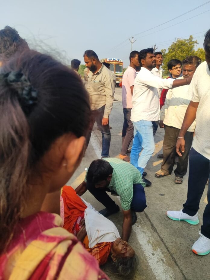 - उमरगा:- तालुक्यातील लातूर – उमरगा रोडवरील नारंगवाडी पाटी जवळ दुचाकी – इनोवा चा अपघात होऊन सावळसूर येथील एकाचा मृत्यू झाला तर एक जण गंभीर जखमी झाल्याची घटना दि. 3 रोजी दुपारी साडेतीन वाजण्याच्या सुमारास घडली आहे. लातुर – उमरगा रोड वरुन सावळसूर येथून नारंगवाडीच्या दिशेने दि.3 रोजी जाणा- या दुचाकी क्रंमाक MH 25 J 5220 ला पाठीमागून येणाऱ्या इनोवा कार क्रमांक MH 12 XX 3713 ने जोराची धडक दिल्यानेदुचाकी वरुन प्रवास करणाऱ्या आई भिमाबाई गणपती बिराजदार वय 62 व प्रेमानाथ गणपती बिराजदार वय 45 राहणार सावळसुर हे गंभीर जखमी झाले. सदर अपघाताची माहिती मिळताच उमरगा चौरस्ता येथील अपघातग्रस्ताच्या मदतीला मोफत असलेली जगदगुरु रामानंदाचार्य नरेंद्राचार्य महाराज संस्थान नाणीज धाम ची रुग्णवाहिका तातडीने घटनास्थळी दाखल होऊन जखमीला उप जिल्हा रुग्णालय उमरगा येथे दाखल केले असता डॉक्टरांनी तपासणी केले असता भिमाबाई गणपती बिराजदार यांना मृत घोषित केले तर गंभीर जखमी झालेल्या त्यांचा मुलगा प्रेमनाथ यास पुढील उपचाराकरीता दाखल करुन घेण्यात आले असल्याची माहिती रुग्णवाहिका चालक शेषेराव लवटे यांनी दिली.