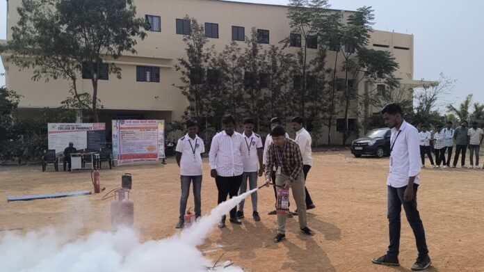 उमरगा :- तालुक्यातील कोरेगाव वाडी येथील शिवाई चॅरिटेबल ट्रस्ट संचलित कॉलेज ऑफ फार्मसी, येथे दि.2 रोजी शशी फायर सेफ्टी कॉलेज, निलंगा यांच्या सहकार्याने अग्नी सुरक्षा मार्गदर्शन आयोजित करण्यात आले होते . यावेळी संस्थेचे अध्यक्ष बी.एच. बेडदुर्गे, सचिव डॉ. विजय बेडदुर्गे, उपाध्यक्ष प्रा. अजय बेडदुर्गे यांची प्रमुख उपस्थिती होती.
