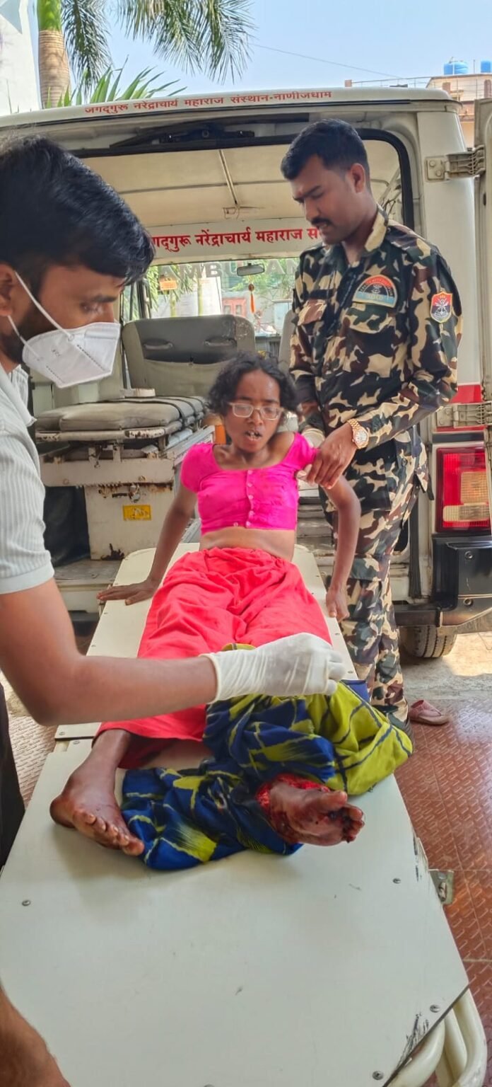 सविस्तर वृत्त दिनांक 25 रोजी सकाळी ठीक 9:45 वाजता उमरगा येथुन सोलापूर च्या दिशेने पायी चालत जाना-या महिलेस अज्ञात जीप ने धडक देऊन पसार झाली असून , अपघातात संगीता गणपती वाघमारे वय 50 राहणार उमरगा ही महिला गंभीर जखमी झाली आहे .सदर घटनेची माहिती मिळताच उमरगा चौरस्ता येथील अपघात ग्रसताच्या मदतीला मोफत असलेली जगदगुरु रामानंदाचार्य नरेंद्राचार्य जी महाराज संस्थान नाणीज धाम ची रुग्णवाहिका तातडीने घटनास्थळी दाखल होऊन जखमी महीलेस उपचारासाठी उप जिल्हा रुग्णालय उमरगा येथे दाखल केले. असल्याची माहिती रुग्णवाहिका चालक शेषेराव लवटे यांनी दिली आहे.